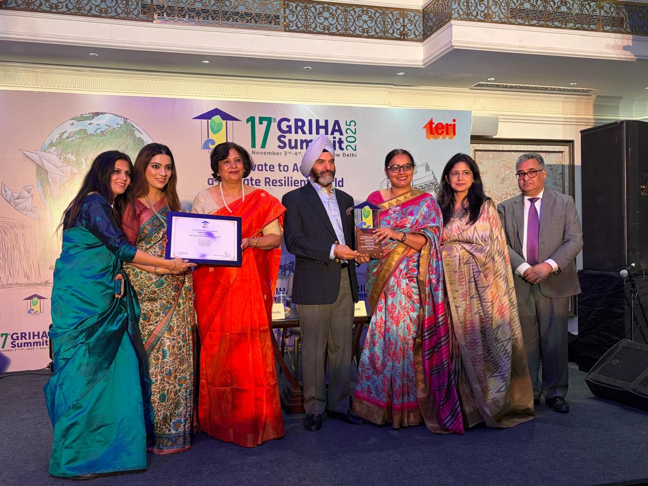 Mr. Bhupinder Bhalla, IAS (Retd.), Former Secretary to the Government of India, Ministry of New and Renewable Energy (MNRE), conferred the prestigious ‘Special Mention Award for Exemplary Performance in Existing Schools’ upon Honourable Principal Ms. Rooma Pathak during the 17th GRIHA Summit 2025, held on 3rd November 2025 at The Claridges, New Delhi.