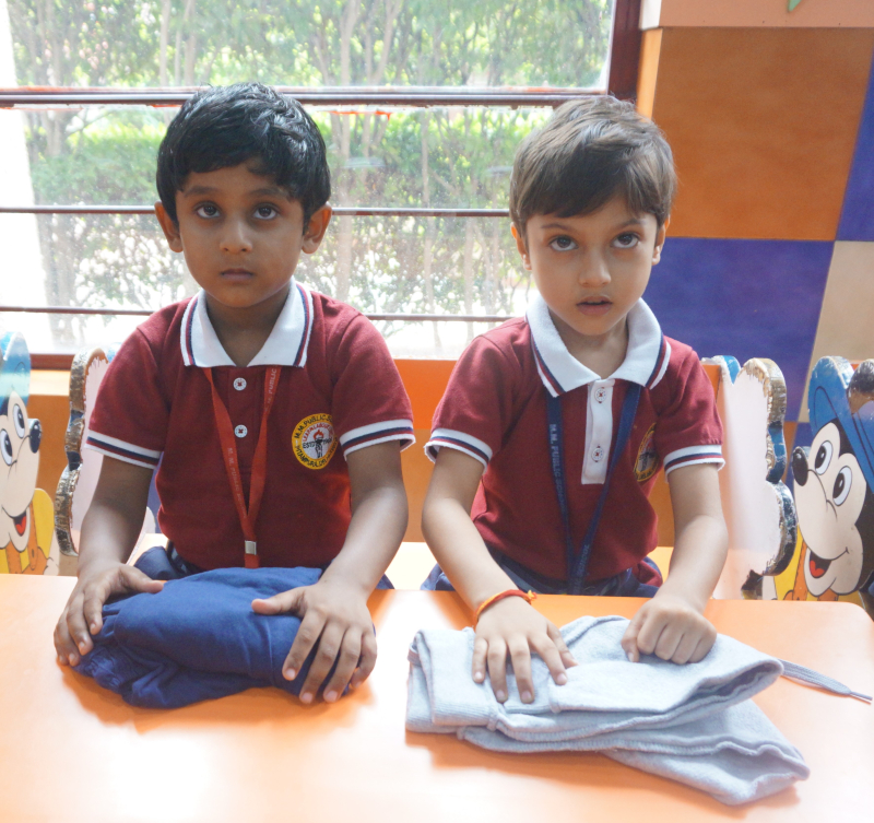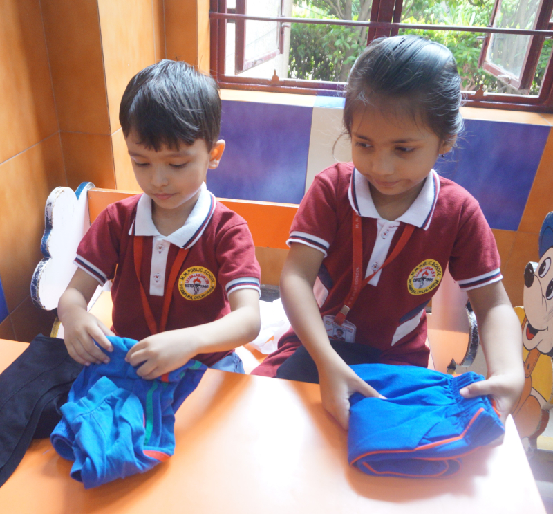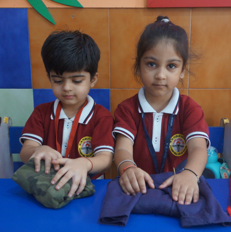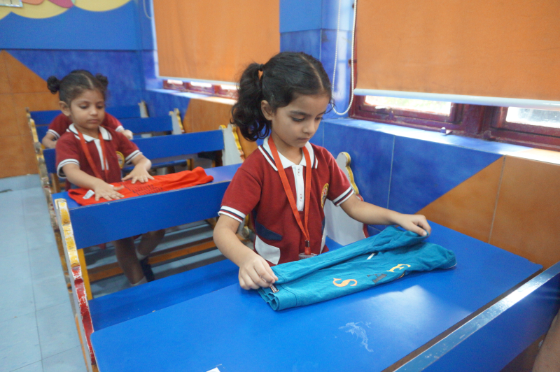 An engaging life skill activity was conducted for the students of L.K.G. and U.K.G. on 8th October 2025. The students learnt to fold their clothes neatly. The activity created an atmosphere of fun and excitement as children actively participated and followed each step with interest. Through this enjoyable experience, students gained an essential daily life skill — folding their clothes — in a fun and meaningful way.