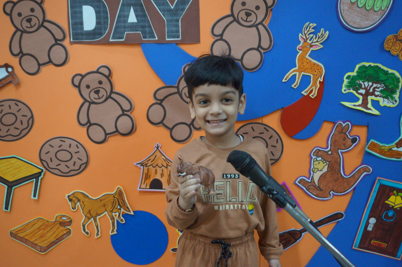 On 14th October 2025, the L.K.G. students celebrated Brown Colour Day with great enthusiasm. They came dressed in brown outfits and brought brown-coloured toys or objects from home. Students confidently spoke a few lines about their item, it helped them in improving their speaking skills, vocabulary and confidence. Through this fun and interactive activity, they also successfully learnt to identify the brown colour.