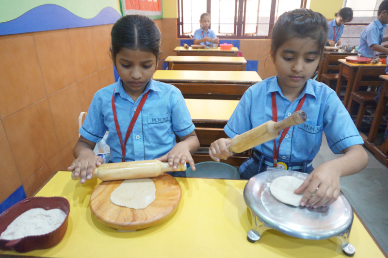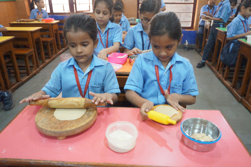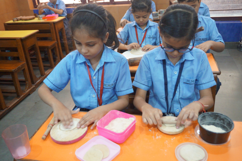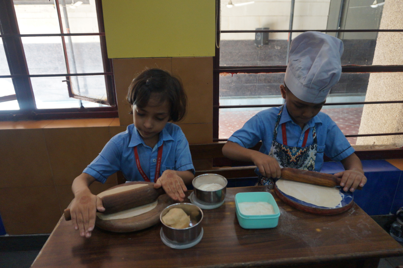 To enhance daily life skills, a Life Skills Activity on Flattening of Flour Dough using a rolling pin was organized for Grades I and II on 14th October 2025. Students actively participated and enjoyed the hands-on experience. They learnt how to use a rolling pin and rolling board to flatten dough, gaining practical knowledge. This activity helped them to develop their fine motor skills and coordination. Most importantly, it instilled a sense of independence and confidence in performing simple household tasks.