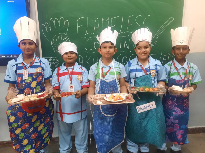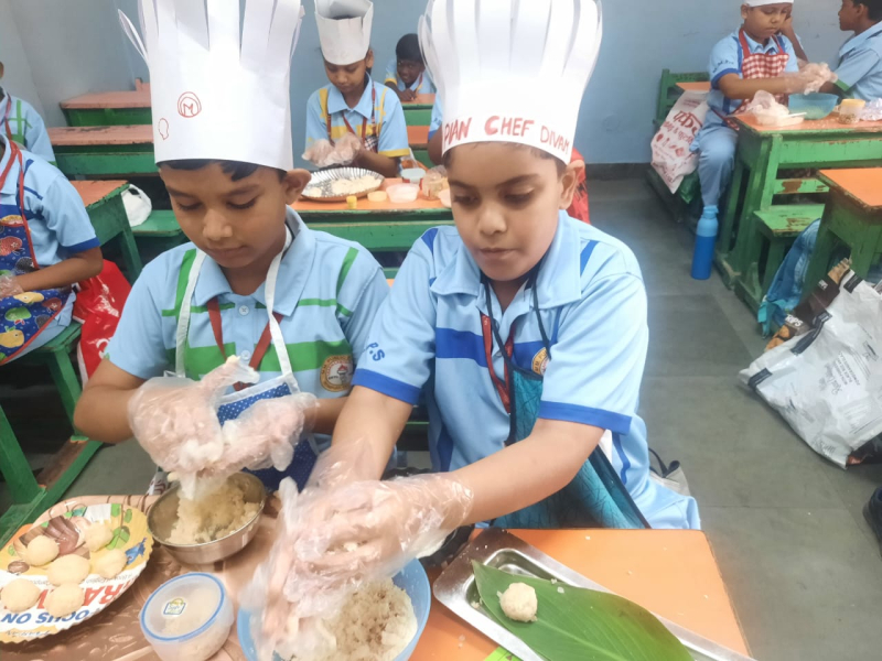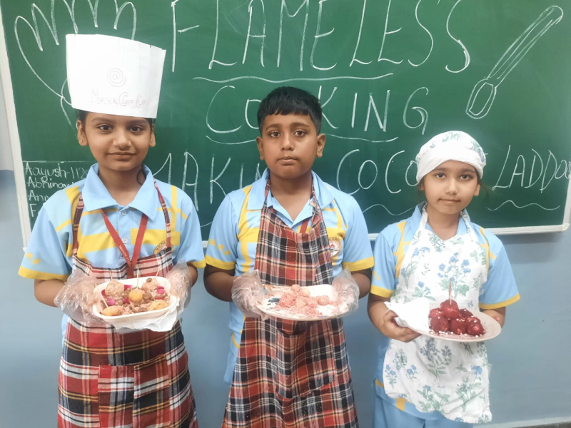 The young chefs used simple, safe ingredients to make laddoos of different colours without using fire. Their creativity, devotion, and enthusiasm filled the classroom with festive cheer and sweet aromas.