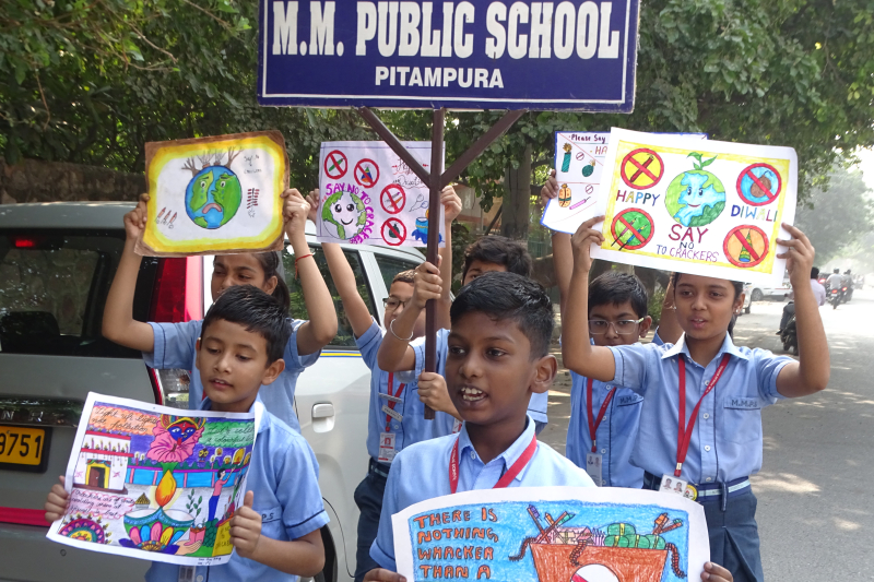 To promote environmental awareness, students took a pledge to say 'No' to crackers and watched an educational video highlighting the harmful effects of firecrackers.