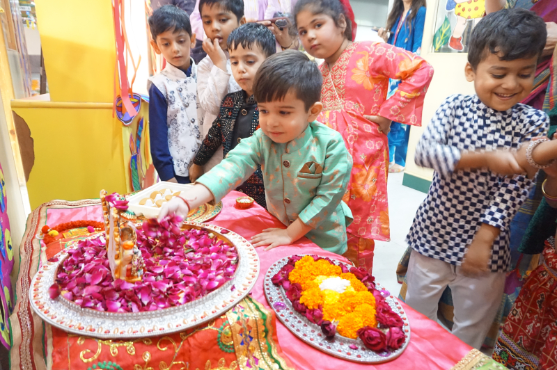 A special Garba event, Garba on the Floor, was organized where students joyfully danced to traditional music. They also took part in the worship of Goddess Lakshmi and Lord Ganesha, invoking blessings for prosperity and happiness.