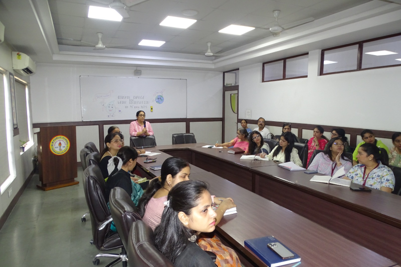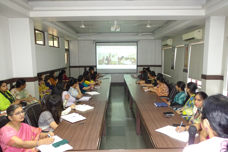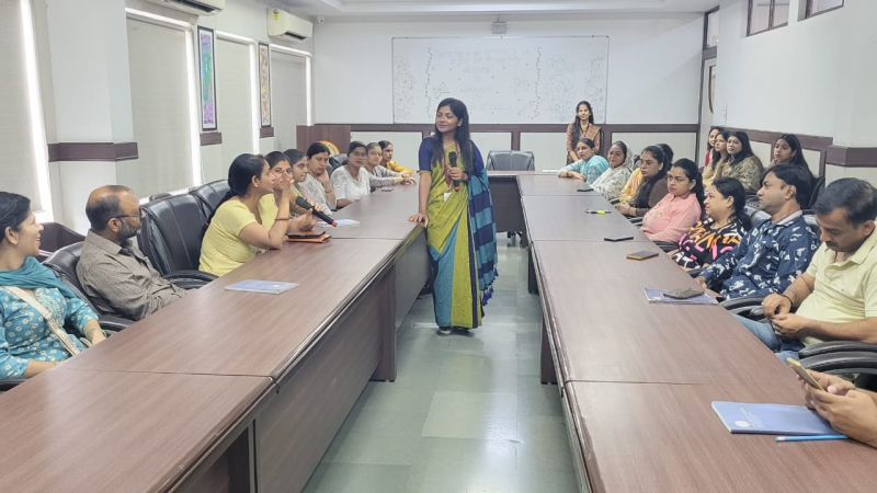 The resource person Ms. Rekha Lalla, Project Manager from The Green Campus Program discussed pressing issues such as rising global temperatures, ecological imbalance, carbon emissions, and the depletion of natural resources. Through various examples, she emphasized on the need for teachers to infuse sustainability into everyday classroom practices, regardless of subject areas.